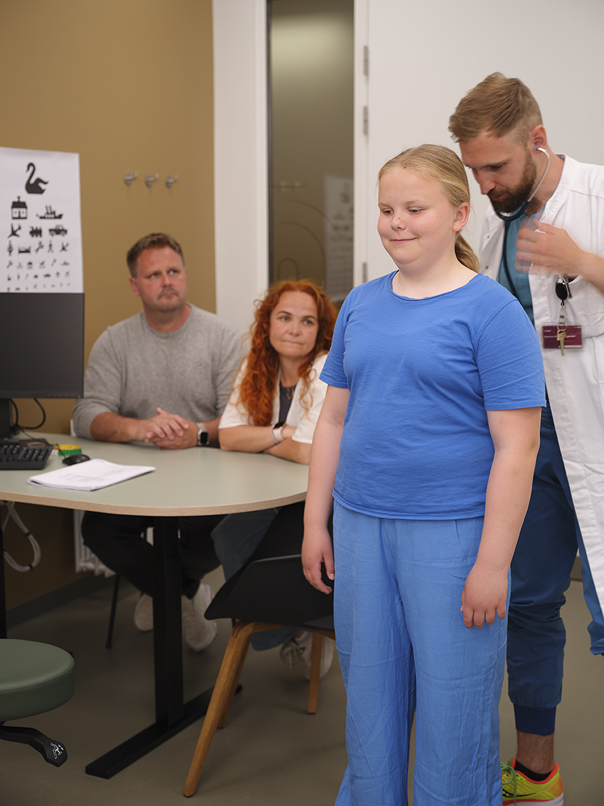 string(84) "Læge lytter på datters lunger og hjerte, mens mor og far sidder ved bordet bagved."